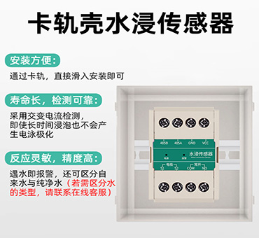 采用獨(dú)有的交流檢測技術(shù),有效避免了浸水電極長時(shí)間工作氧化導(dǎo)致漏水靈敏度下降的問題。