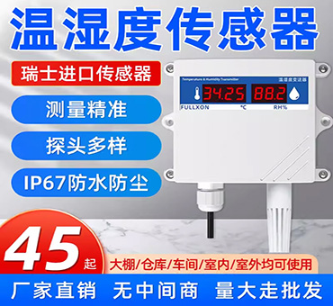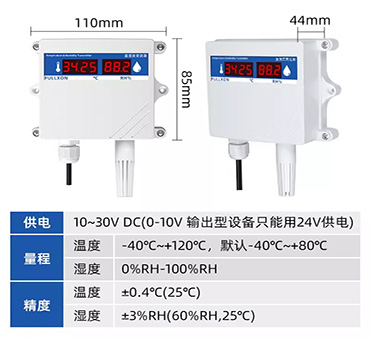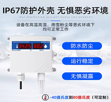 該傳感器帶有數(shù)碼管顯示功能,可實時顯示當(dāng)前溫濕度,采用壁掛防水殼,多用于室外及現(xiàn)場環(huán)境惡劣的場合。